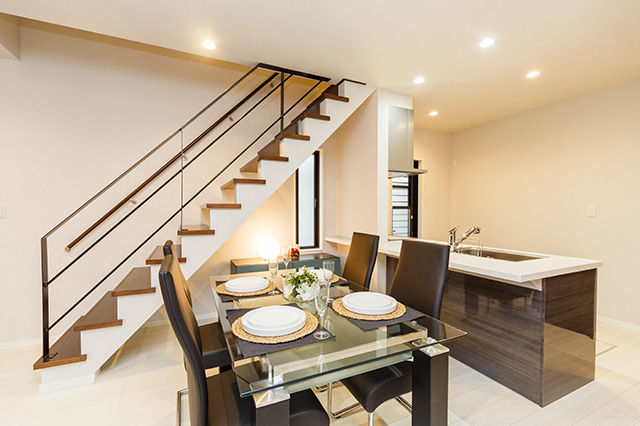 お部屋がすっきりできる豊富な収納や、家族とのふれあいを大切にできるリビング階段があり、設備も充実しております。